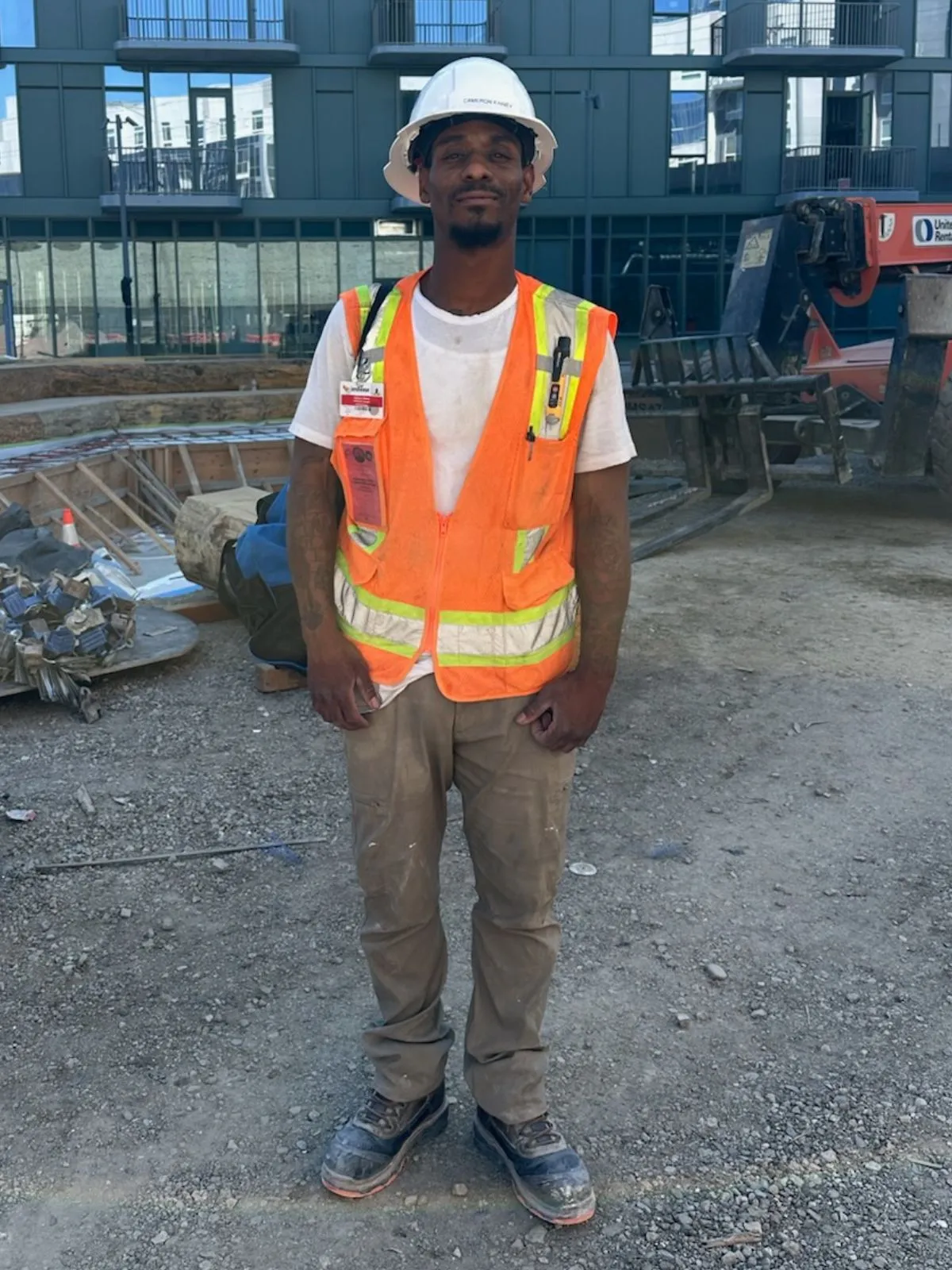 “CEO gave me work clothes, boots, PPE, bus passes, even a helmet,” Cameron says. “I had nothing, and they knew what I needed.”